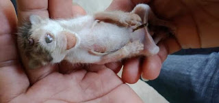suluhsumatera : Seekor anak kucing terlahir memiliki kondisi fisik tidak biasa di Desa Kampung Pajak, Keca. NA IX-X, Kab. Labuhanbatu Utara (Labura), Provinsi Sumatera Utara, Sabtu (25/01/2020) siang.
